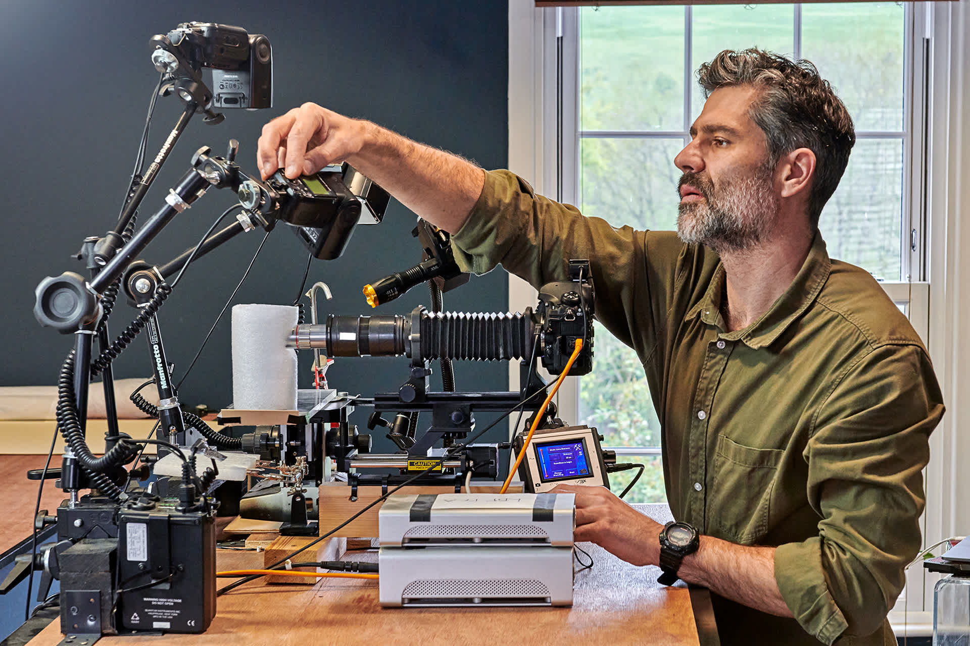 Creating these works is painstaking. Each image takes weeks to produce. Biss uses a digital camera with a microscope lens. The camera is mounted on an electronic rail. This allows Biss to take a shot, then move the camera by an increment of seven microns for the next shot. Seven microns is an incredibly short distance. It’s about 1/10 the thickness of a human hair. Biss will take hundreds of shots of a single part of a bug before moving on. In the end, he might take 10,000 shots of the bug. A computer puts this jigsaw puzzle together into a single, sharply detailed image.