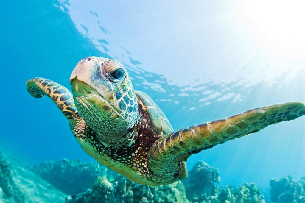 There are seven species of sea turtles. Each species has a shell for protection. Each species has strong flippers for swimming. Learn more about sea turtles.