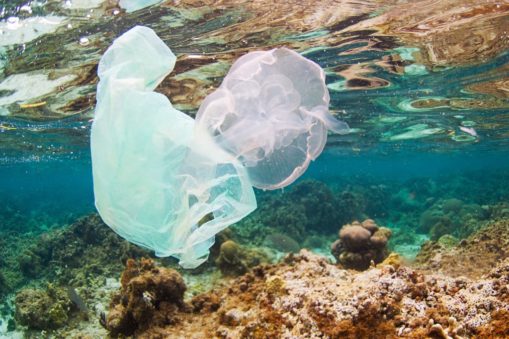 There is trash in the ocean. That is a problem for turtles. See this bag? A turtle might think it is food.